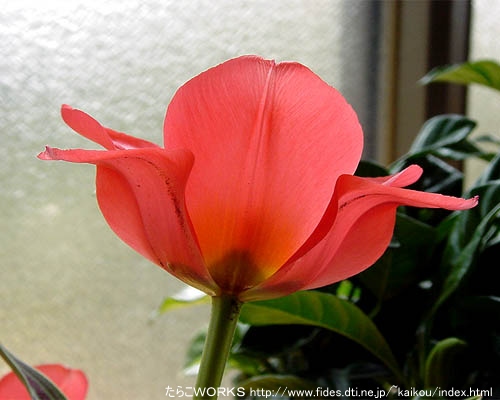 ![]() | こちらは室内で透ける赤い花。 肉厚で瑞々しい花弁の具合がよく写った・・よーな気がする。 SONY CyberShot F505K 500400 |